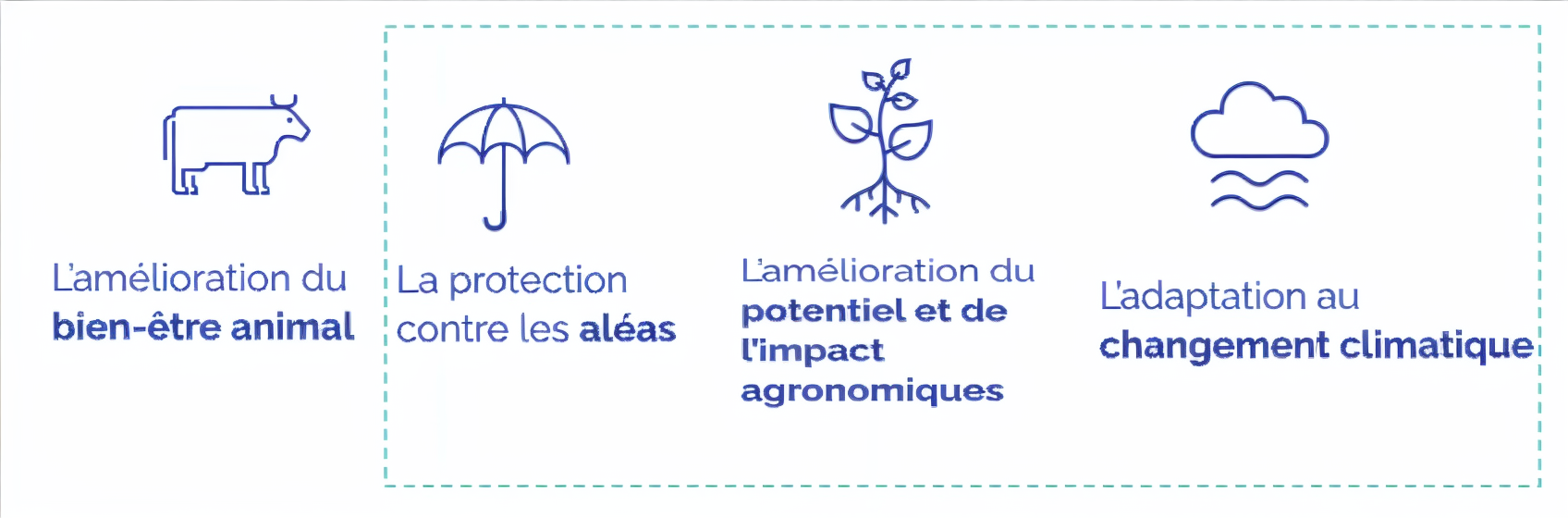 Pérenniser les exploitations agricoles en les adaptant aux changements climatiques et développer la production d’énergies renouvelables sur le territoire grâce à l’installation de panneaux solaires.