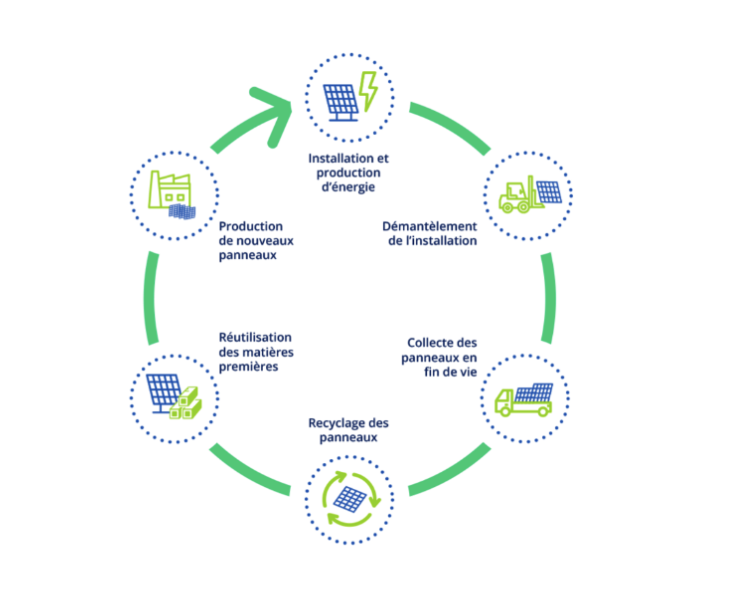 La collecte et le recyclage des panneaux photovoltaïques font l’objet d’une obligation réglementaire depuis 2002. Ils sont encadrés par la directive européenne sur les déchets d’équipements électriques et électroniques (DEEE). En France, l’éco-organisme Soren est en charge de cette filière.